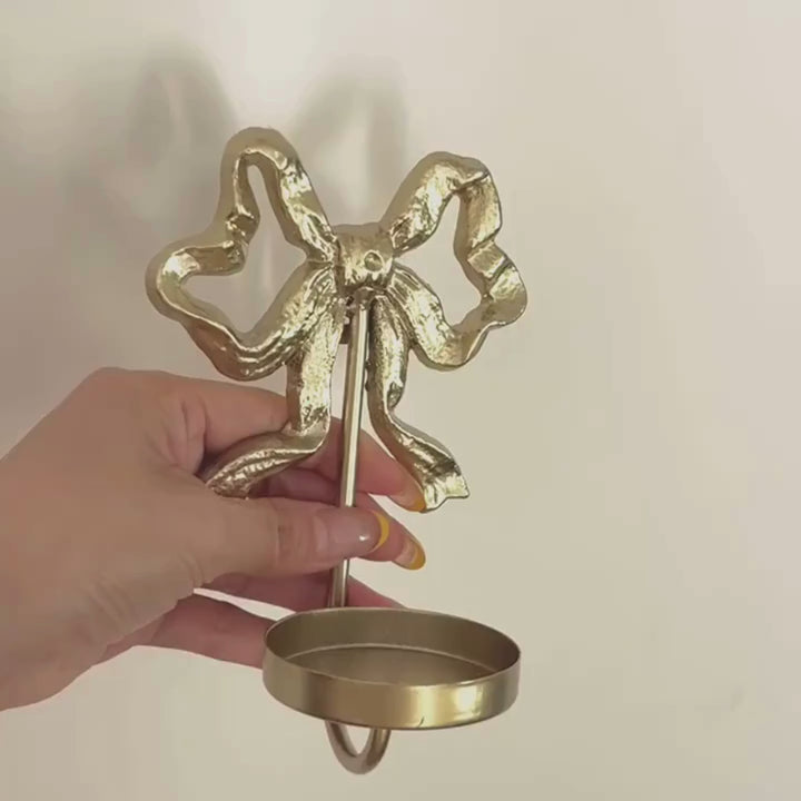 En enkel og fin lysestake i gull med sløyfedetalj 🎀 Passer perfekt til mindre kubbelys.